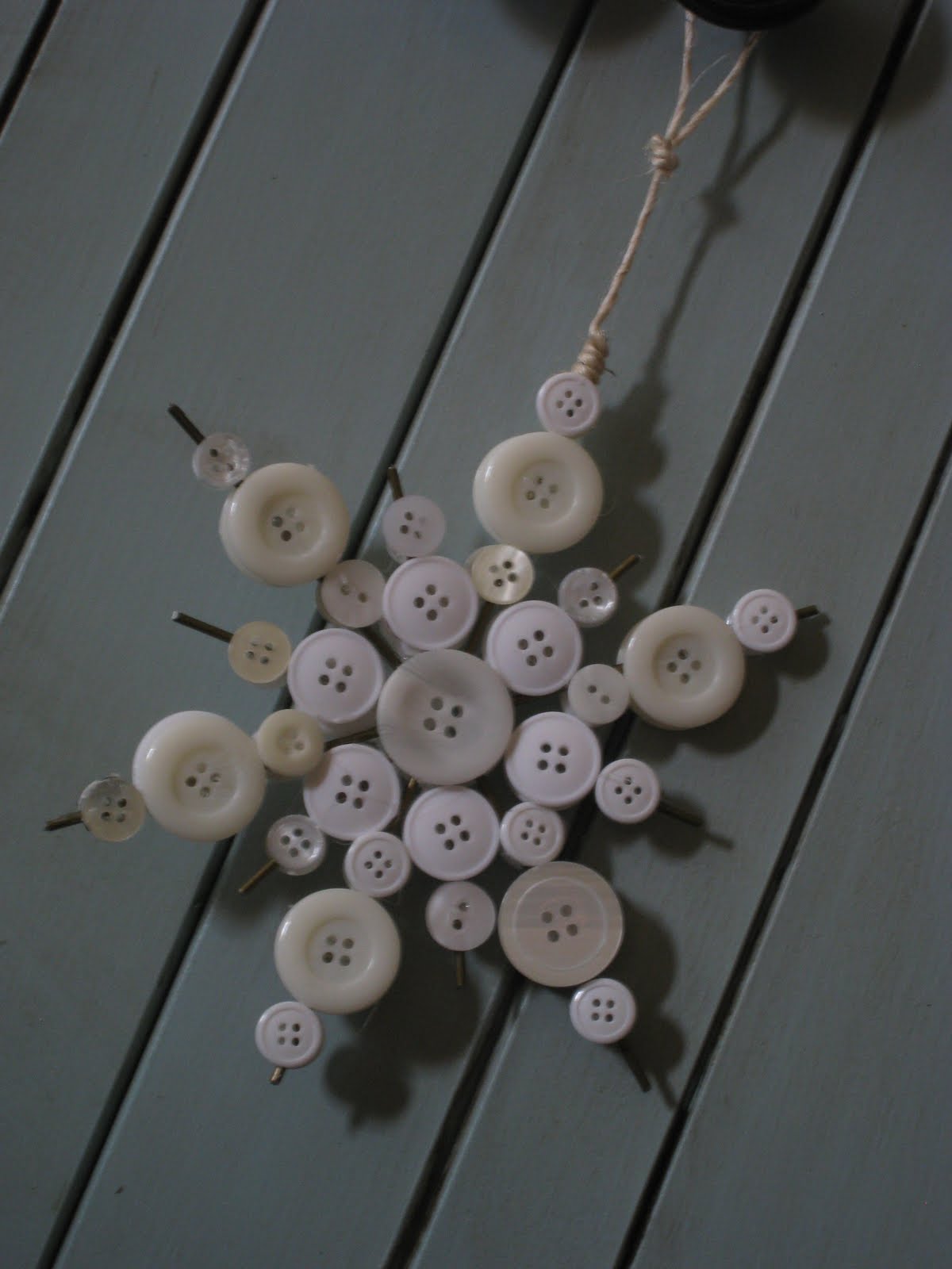 With just some white buttons, a few hangers, some burlap string, and glue, you can create a snowflake ornament! To make the ornament, first cut out six long and six shorter pieces from your wire hangers. Hot glue the twelve pieces to a white button, alternating between short and long pieces. Then, hot glue the rest of your white buttons to the wire pieces until they’re completely covered. Then, attach a string to the top of the ornament, and hang it up wherever you’d like!