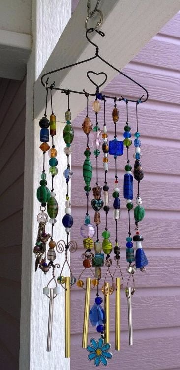A wire hanger is a great base for a wind chime. Hang chimes, beads, and any other decorations you’d like to a black wire hanger. Then, place the hanger on a hook outside your house. This easy craft looks and sounds beautiful!