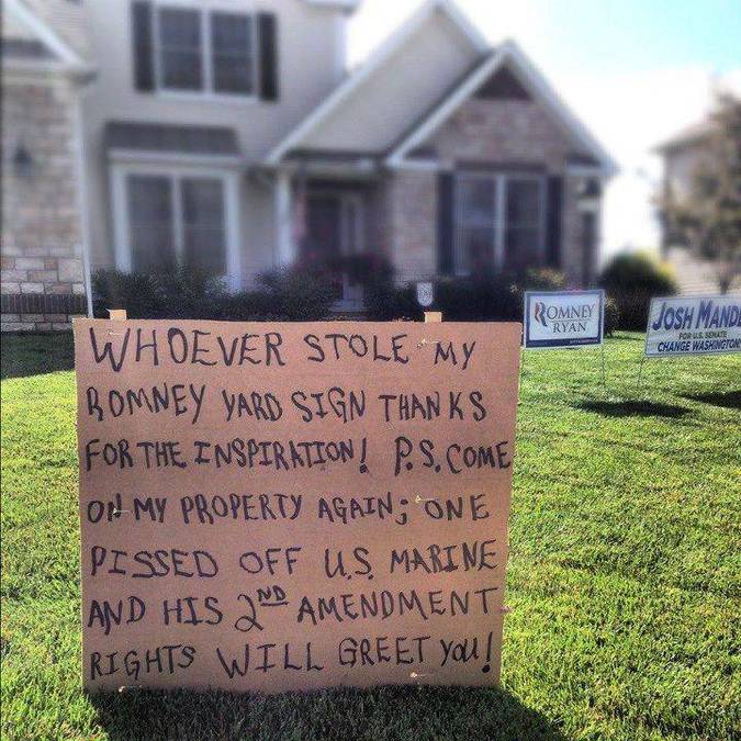 That’s really taking aim at would-be robbers. A little over the top? Maybe, but I guess it works. I mean, who would tempt fate with a body-shaped target with bullet holes in the front yard? The neighbors must be thrilled.