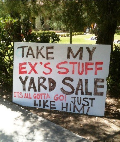 Not that she’s bitter, or anything. Just remember, an ex is an ex for a reason. But his stuff is yours to sell for pennies on the dollar, so check out this event. It sounds like there are bargains to be found!
