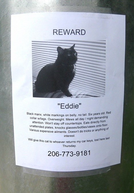 Not only did this guy lose his pet, but he also lost his nunchucks.