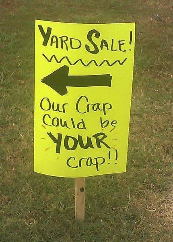 One man’s crap is another man’s crap being sold in a garage sale a couple of years down the road. You have to give them points for honesty. It’s not like 99% of the stuff sold at these things is anything BUT crap.