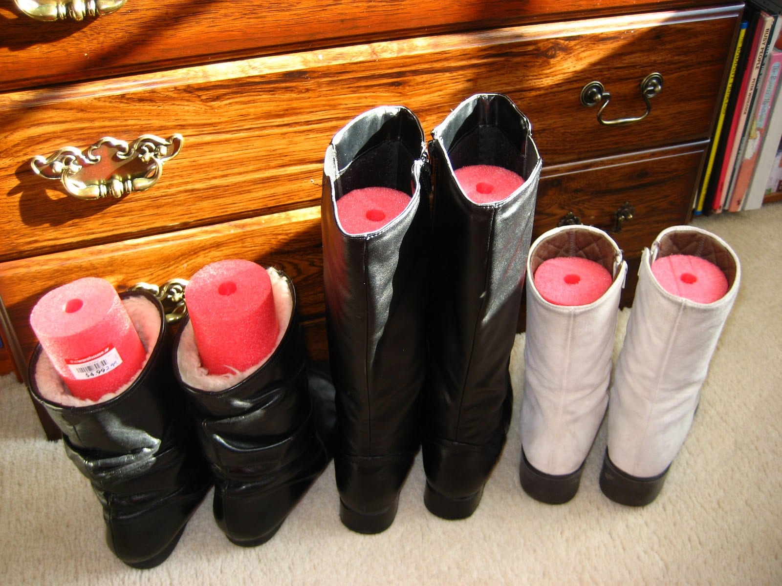 Keep your knee-high or tall boots in their proper form with a little help from pool noodles. Cut the pool noodles into an appropriate length and stuff them inside your boots when you’re not wearing them. This will hold their shape and keep them from creasing.