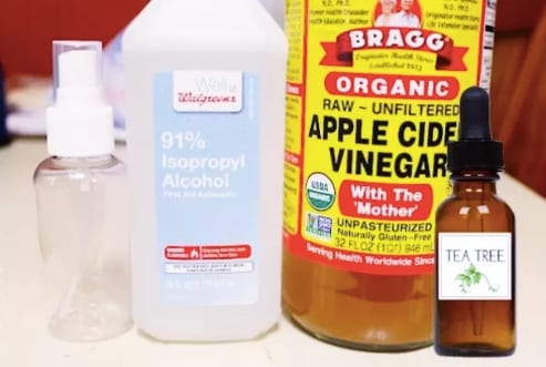 Keep your shoes smelling fresh and also free of fungus and bacteria by making your own shoe deodorizing spray. All you need to do is mix equal parts rubbing alcohol and apple cider vinegar with a few drops of tea tree oil.