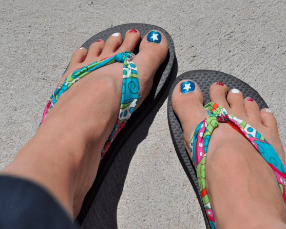 Some flip-flops have a really uncomfortable toe strap and it can just plain hurt – especially if you’ve been wearing them for a while. The trick? Cover the hard straps in soft fabric, and your feet will definitely be thankful.