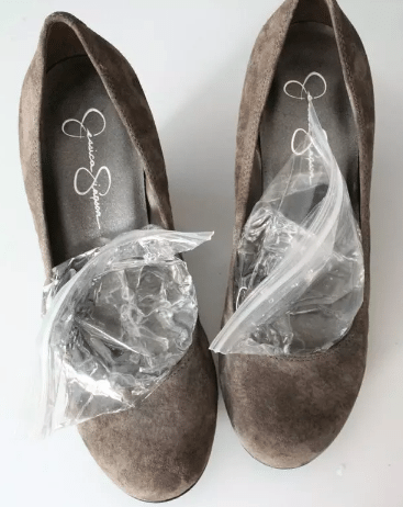 There’s a great method to loosen up the tip of your shoe, which is often the one spot where footwear is too tight. Grab an airtight bag filled with a little bit of water, and stick it in the toe area. Let your shoes rest in the freezer overnight. Because water expands when it becomes ice, the shoe toes will be a little bit wider than before.