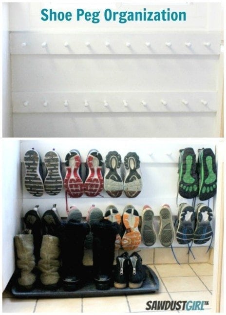 Your collection of shoes needs a place to shine, but what if you could make storing your shoes easier? This won’t work great with high heels, but for all other types of footwear, you can install shoe pegs and store your shoes efficiently, fast, and off the ground.